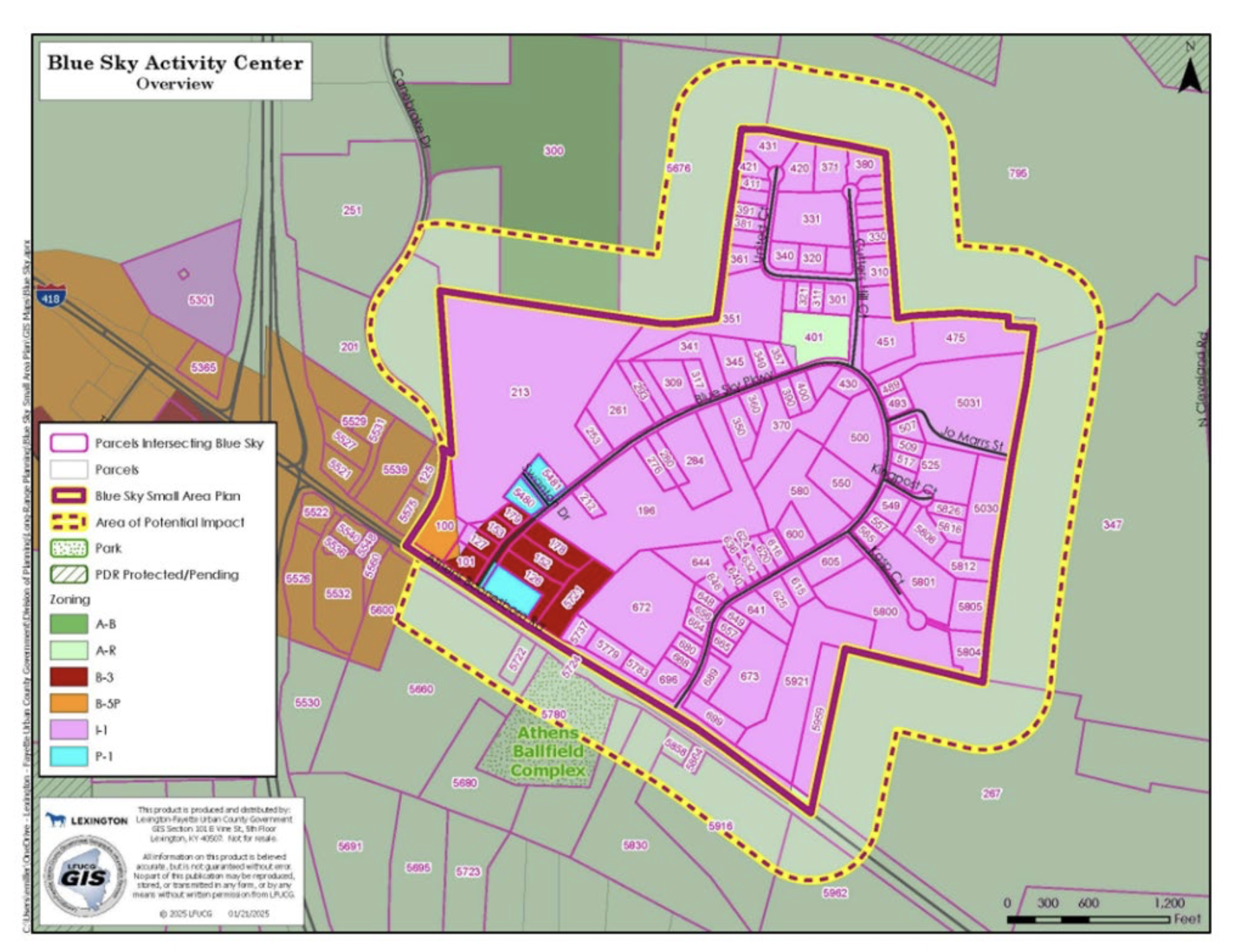 The Blue Sky Activity Center is an industrial area off Athens-Boonesboro near I-75. It was brought into the Urban Service Area in 2024, and is being planned for redevelopment.
