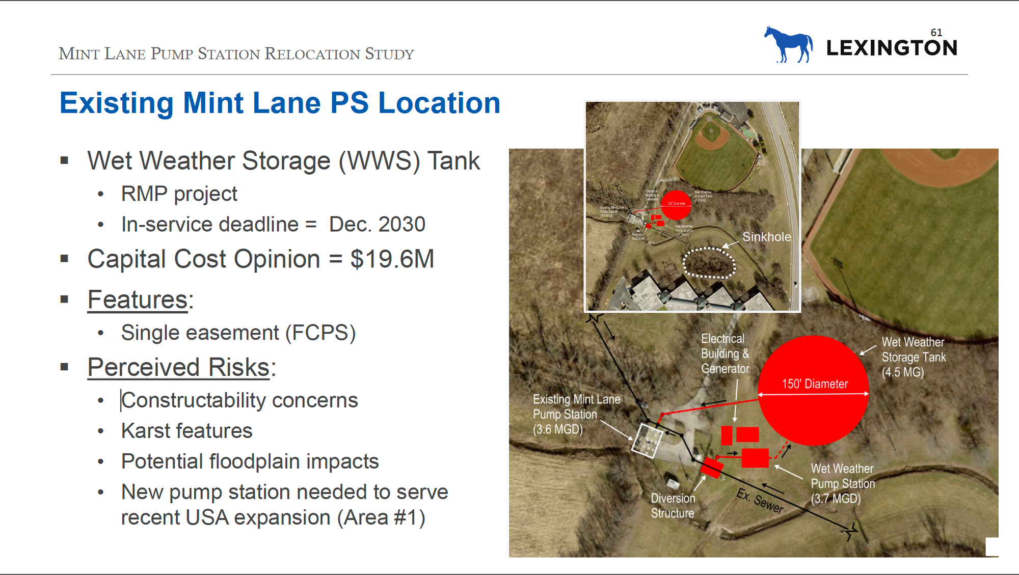 The city needs to deal with the troubled Mint Lane pump station by the end of 2030 to comply with an EPA Consent Decree, which it's currently under for failing to maintain its sanitary sewer and stormwater systems over the years.