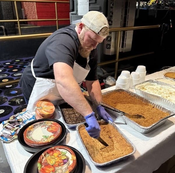 Josh Alfrey, shown here serving food to unhoused neighbors, says MoreLove provides direct services to vulnerable community members. (Photo courtesy MoreLove)
